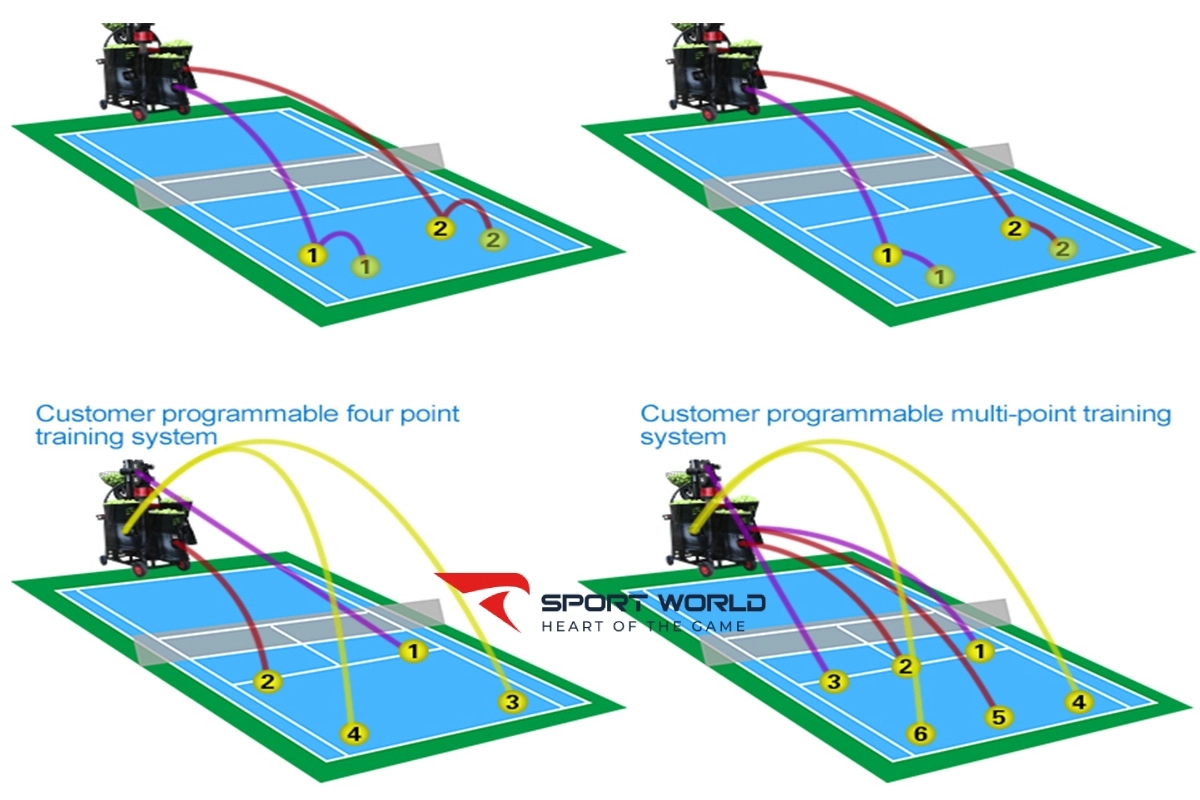 Điều khiển từ xa thông minh: Người dùng có thể điều chỉnh các thông số như tốc độ, góc bắn và chế độ luyện tập thông qua ứng dụng trên điện thoại hoặc remote, mang lại sự tiện lợi tối đa.