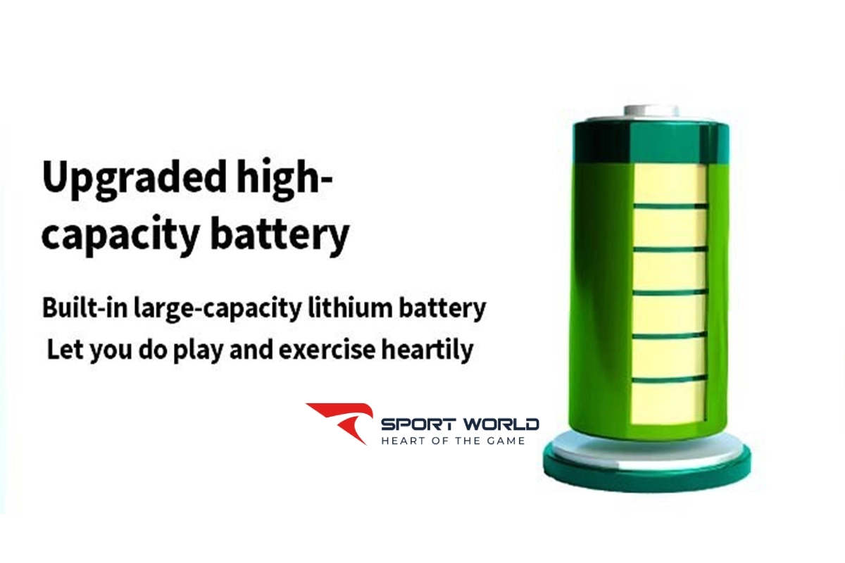 - Thời gian sử dụng lâu dài: Với pin 12V - 18AH, máy có thể hoạt động liên tục khoảng 3 giờ sau mỗi lần sạc đầy, hỗ trợ việc luyện tập kéo dài mà không cần lo lắng về việc hết pin.