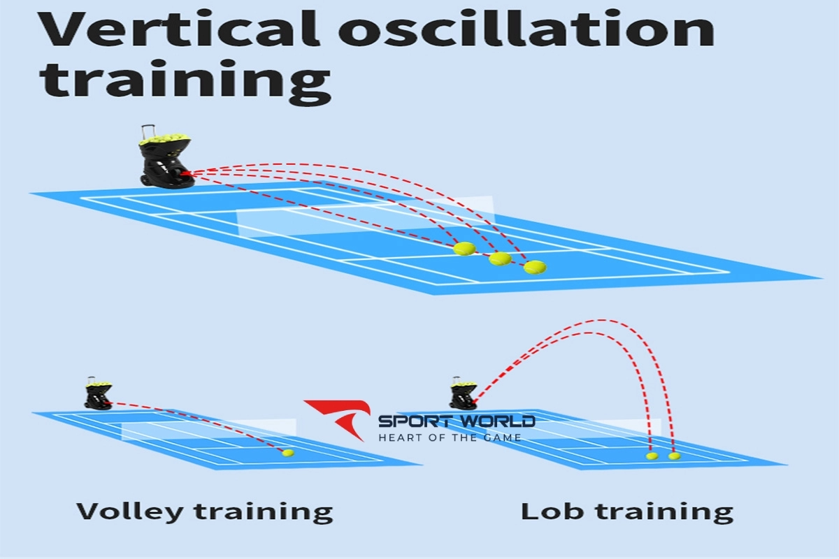 - Chế độ luyện tập đa dạng: Máy có nhiều chế độ bắn bóng khác nhau, cho phép người dùng luyện tập các kỹ thuật khác nhau trong tennis.