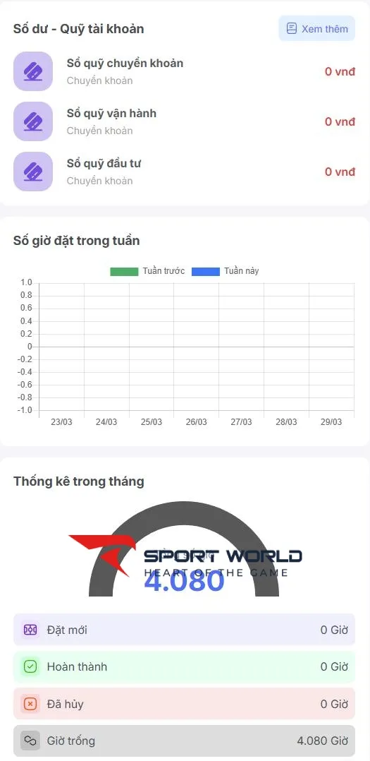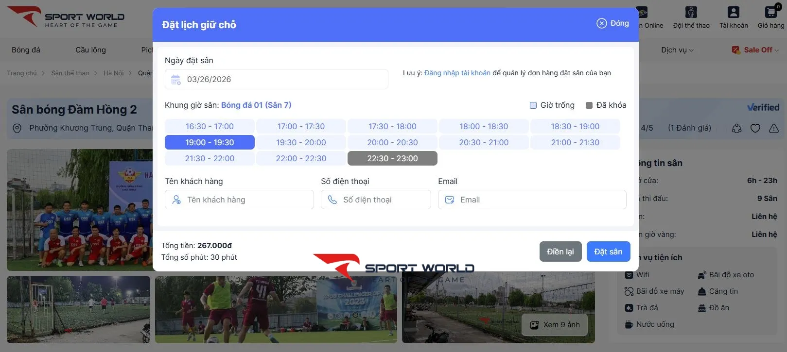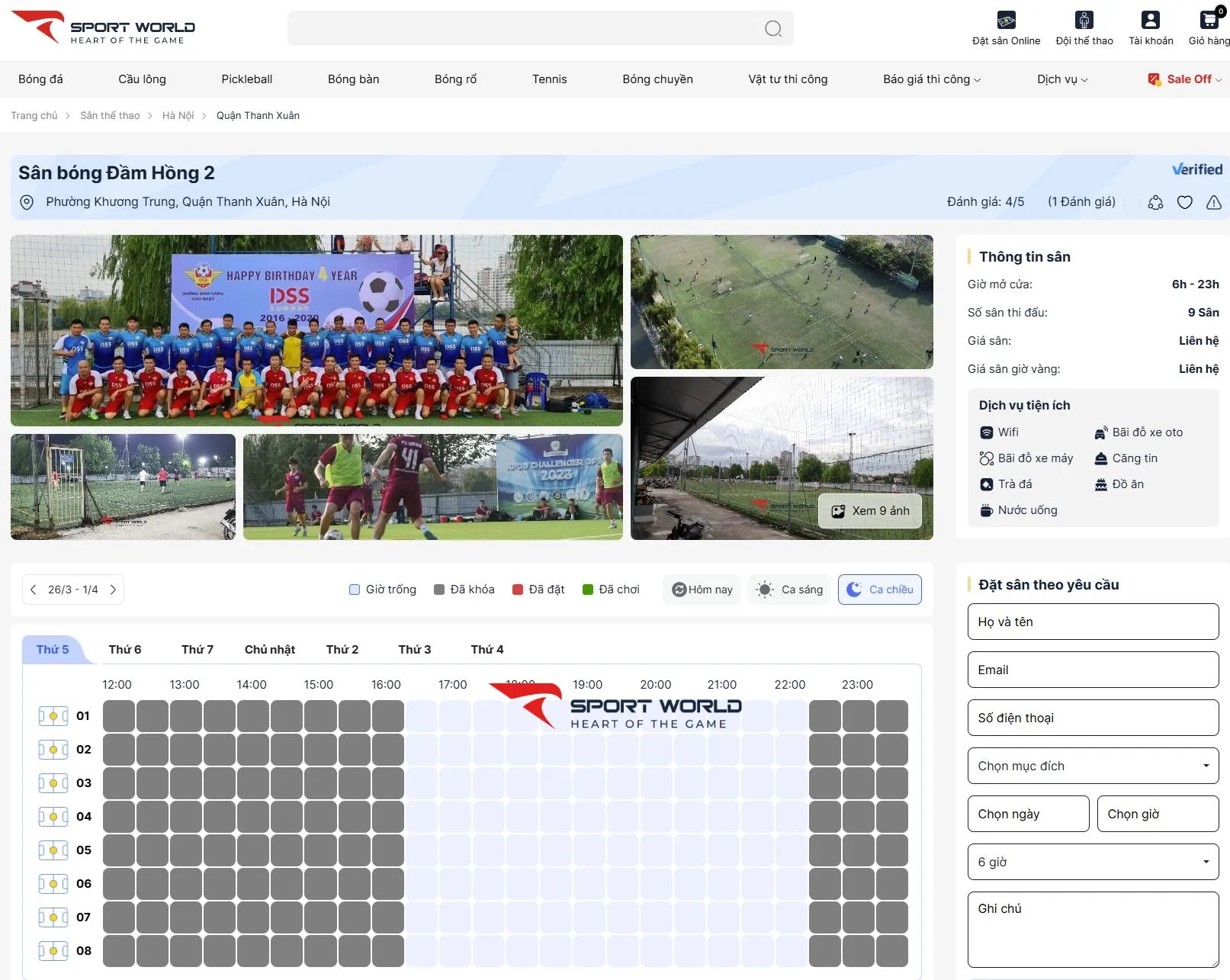 Tham khảo hệ thống website đặt sân thể thao trên toàn quốc từ Thế giới thể thao: https://thegioithethao.vn/san-the-thao