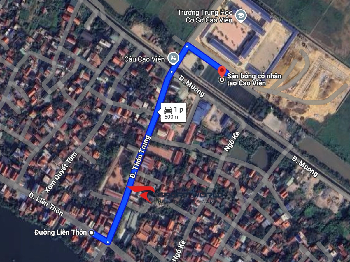 - Đường đi đến sân bóng đá cỏ nhân tạo Cao Viên: Đi về hướng Đông Nam trên Đ. Liên Thôn về phía Đ. Thôn Trung, 34m rẽ trái sau quán Ăn Huệ Nghĩa, 300m tại xưởng may AD, tiếp tục vào Đ. Bờ Sông, 55m rẽ phải, sau đó đi thẳng 84m sẽ tới Sân bóng cỏ nhân tạo Cao Viên.