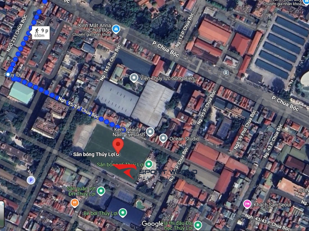 - Vị trí thuận tiện và dễ tiếp cận, tại Ngõ 95 P. Chùa Bộc, Trung Liệt, Đống Đa, Hà Nội. Sân bóng nằm phía sau trường Đại học Thủy Lợi