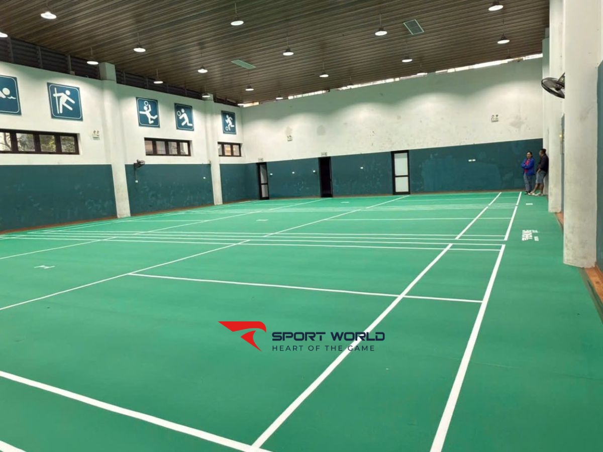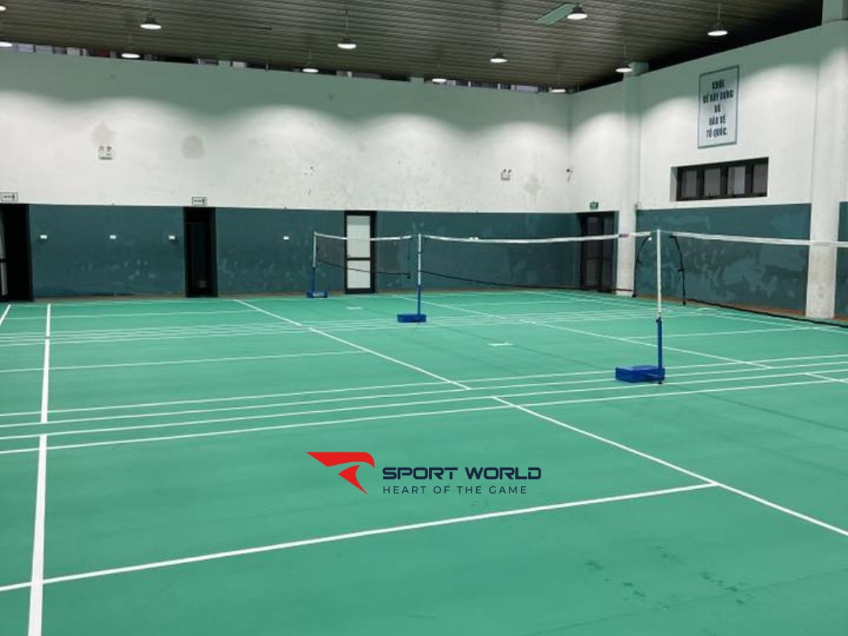 - Mặt sân được sử dụng sản phẩm thảm cầu lồng vân cát màu xanh lá SPV-23145 với độ dày tiêu chuẩn giúp giảm chấn, hấp thụ lực tốt, chống trơn trượt nhằm bảo vệ và nâng cao trải nghiệm người chơi hơn thế còn tăng tính thẩm mỹ, dễ vệ sinh và bảo trì.