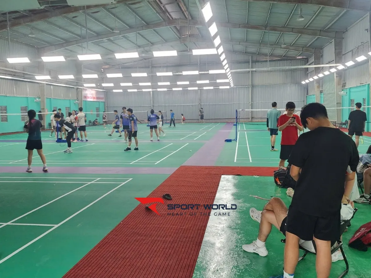 - Khoảng cách giữa các sân được bố trí hợp lý, đảm bảo an toàn khi thi đấu song song nhiều sân. Chiều cao trần đạt chuẩn, tạo cảm giác thoáng đãng, không bị cấn cầu khi đánh cầu cao.