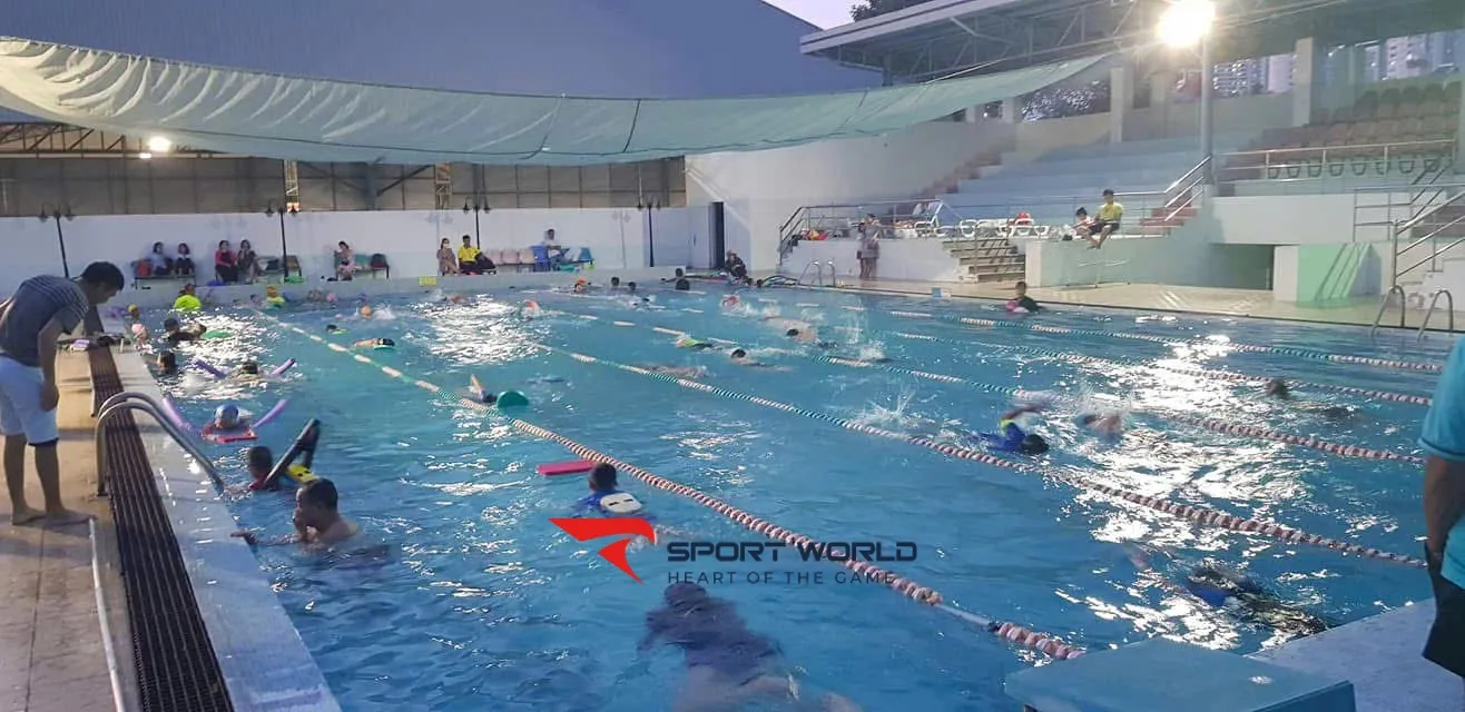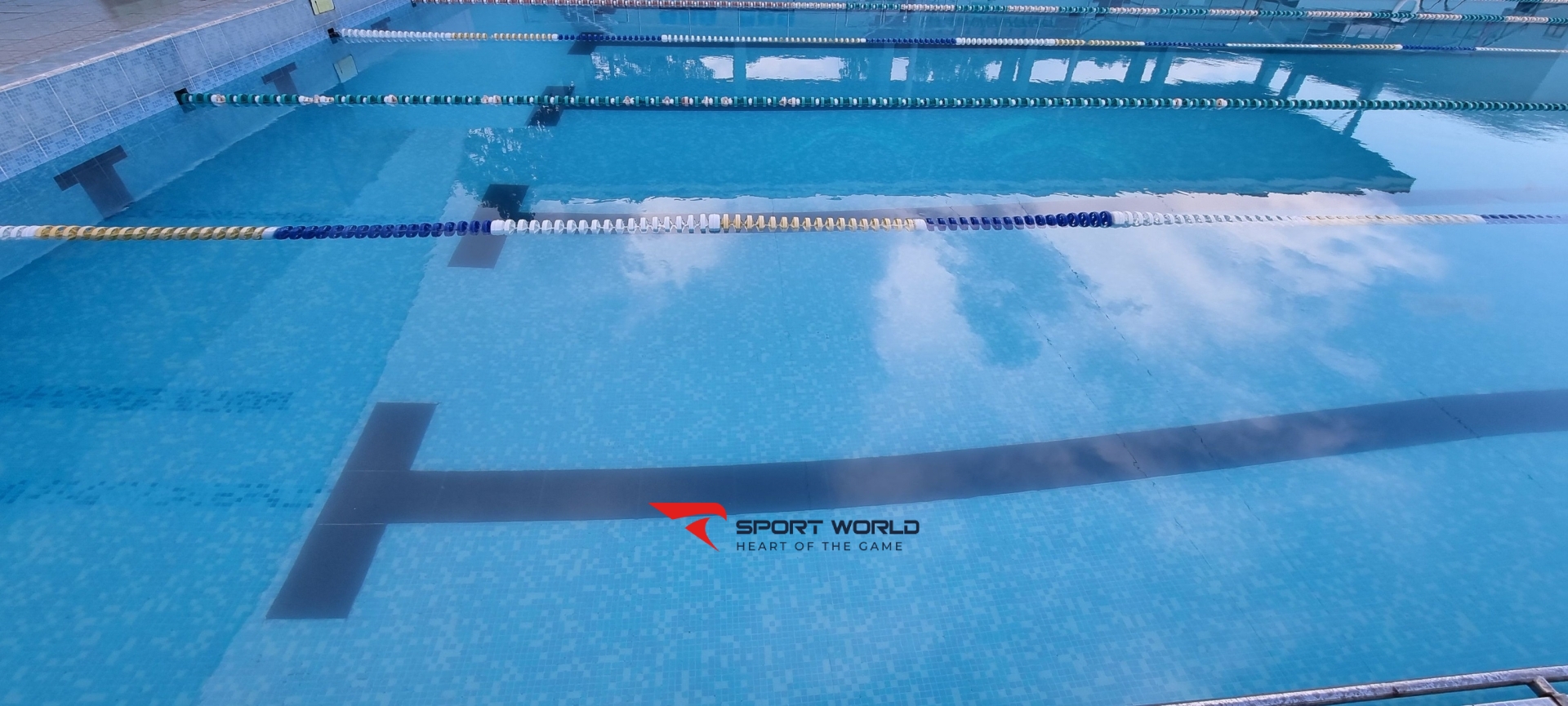 Khu hồ bơi gồm 6 làn tiêu chuẩn, đáp ứng tốt nhu cầu bơi lội rèn luyện sức khỏe cũng như học bơi cho trẻ em.