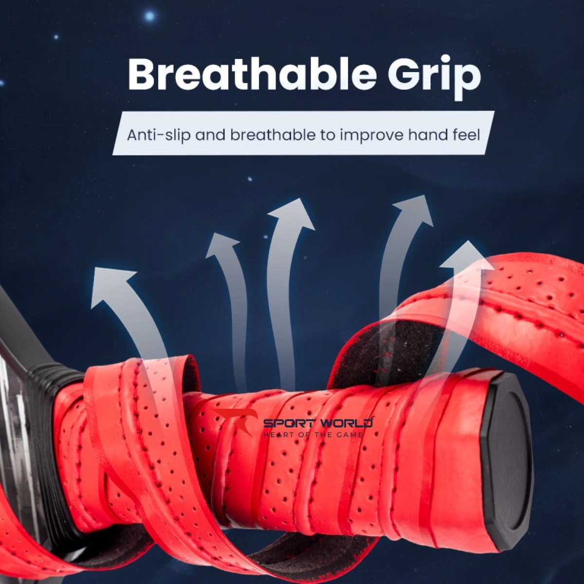 - Với tay cầm bằng da PU. Được thiết kế với các tính năng hút ẩm tiên tiến và phong cách cao cấp, đảm bảo cầm chắc chắn và thoải mái, giúp duy trì khả năng kiểm soát tối ưu trong mỗi trận đấu căng thẳng.