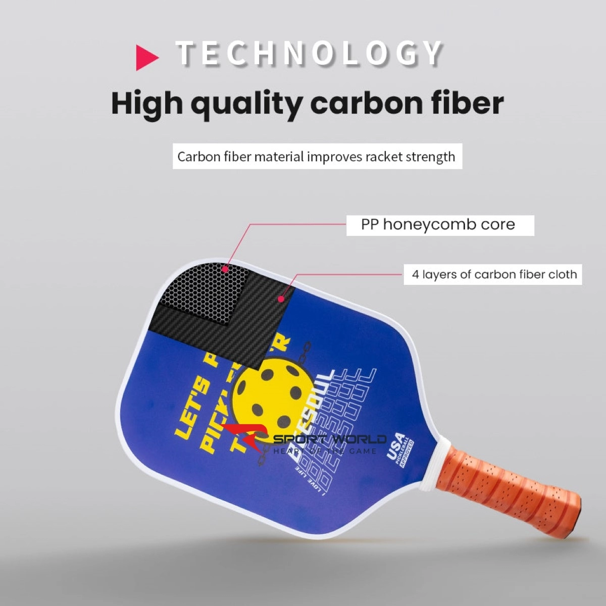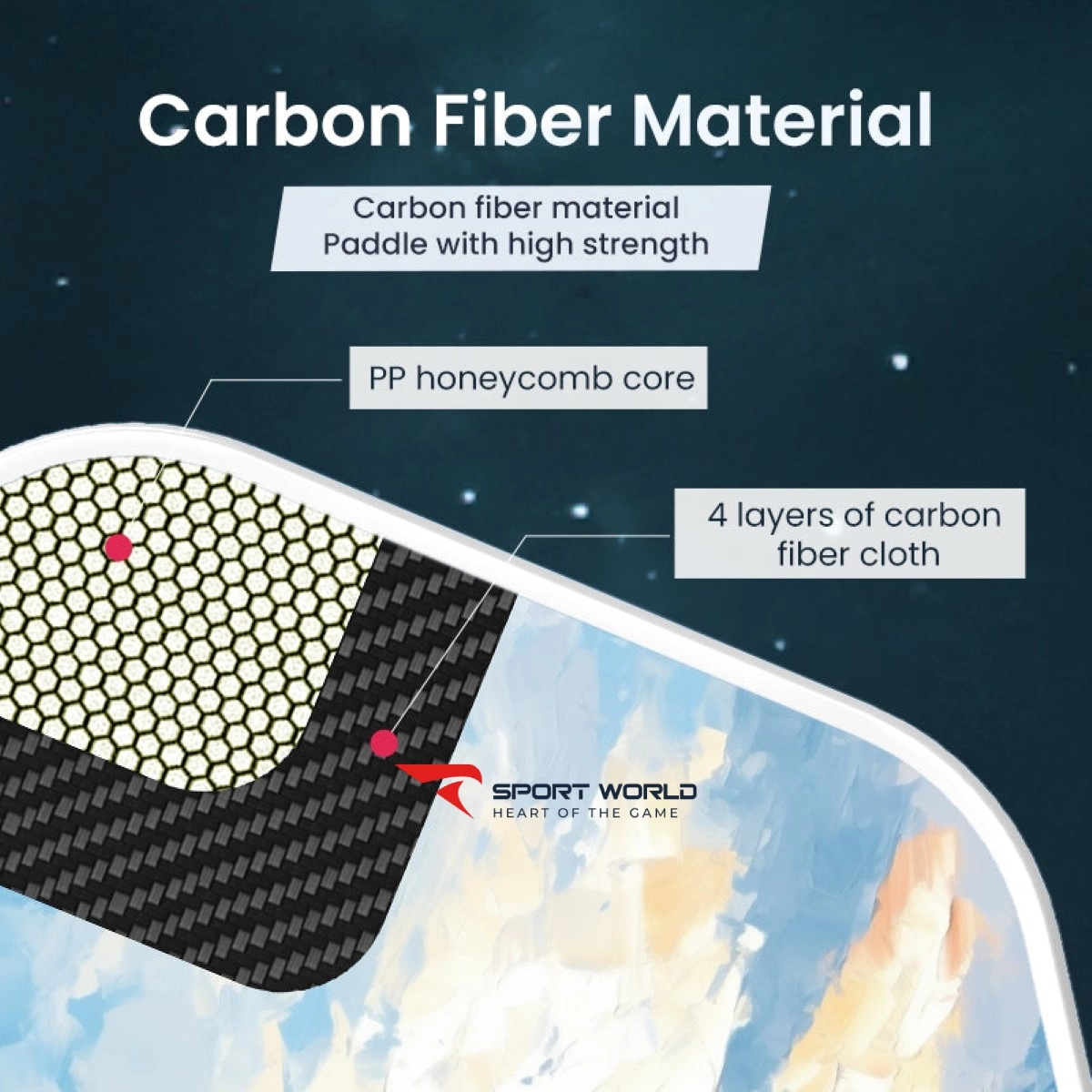 - Được trang bị công nghệ bảo vệ cạnh với kiểu dáng đẹp, nhẹ và chắc chắn, đảm bảo được độ cân bằng tốt và bền bỉ. Lõi tổ ong bằng polypropylen cải tiến phối hợp liền mạch với mặt sợi carbon, hấp thụ độ rung động để mở rộng điểm ngọt và cho cảm giác vợt nhẹ hơn.