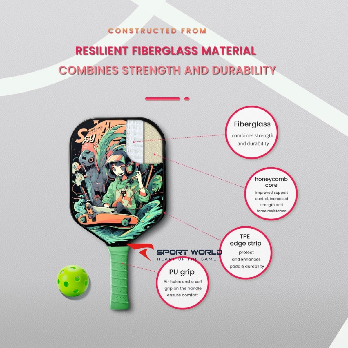 - Bề mặt sợi thủy tinh giúp cân bằng giữa sức mạnh và khả năng kiểm soát, đảm bảo rằng trong mỗi cú đánh đều có sự cân bằng hoàn hảo giữa lực và sự khéo léo, giúp tăng hiệu suất cho người chơi.
