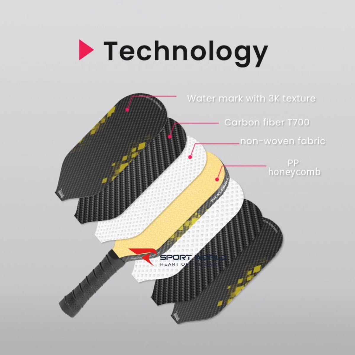 - Reinforced Polypropylene Honeycomb Core: Với công nghệ lõi tổ ong bằng polypropylen giúp vợt có độ bền và hiệu suất ổn định.